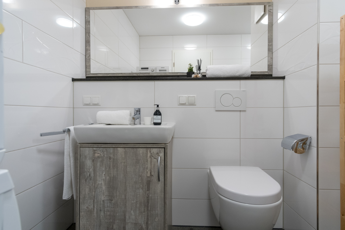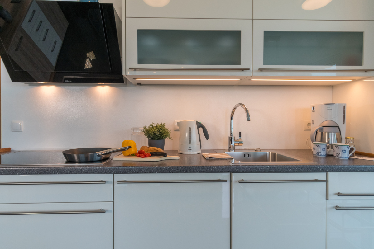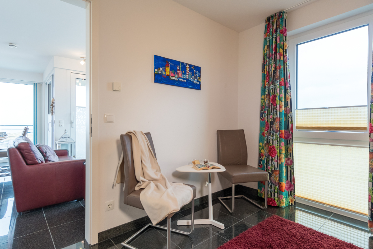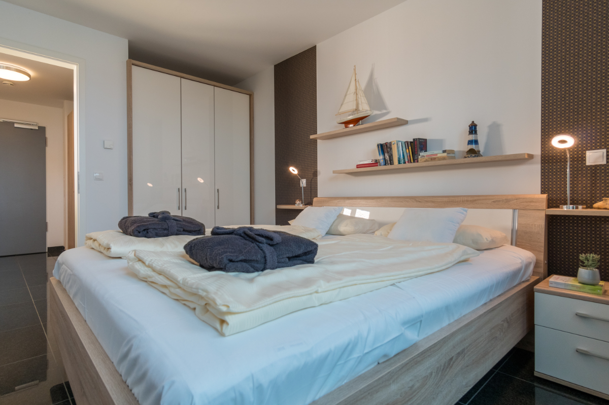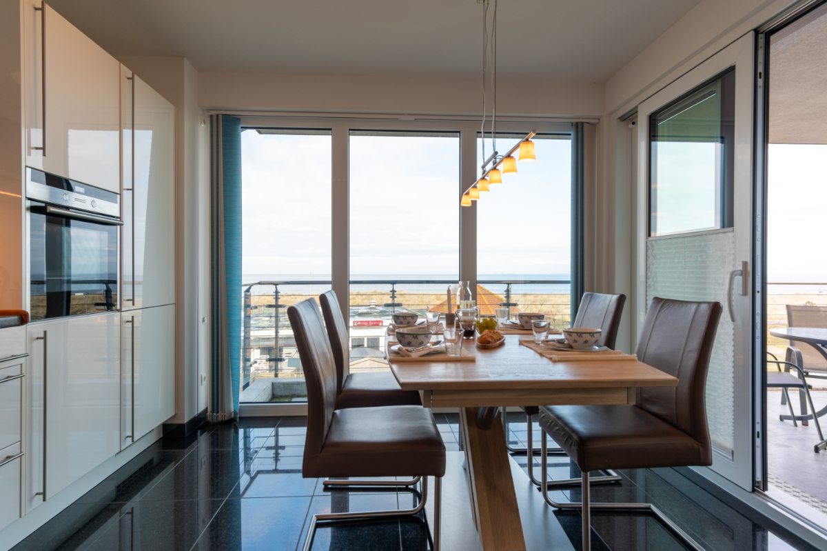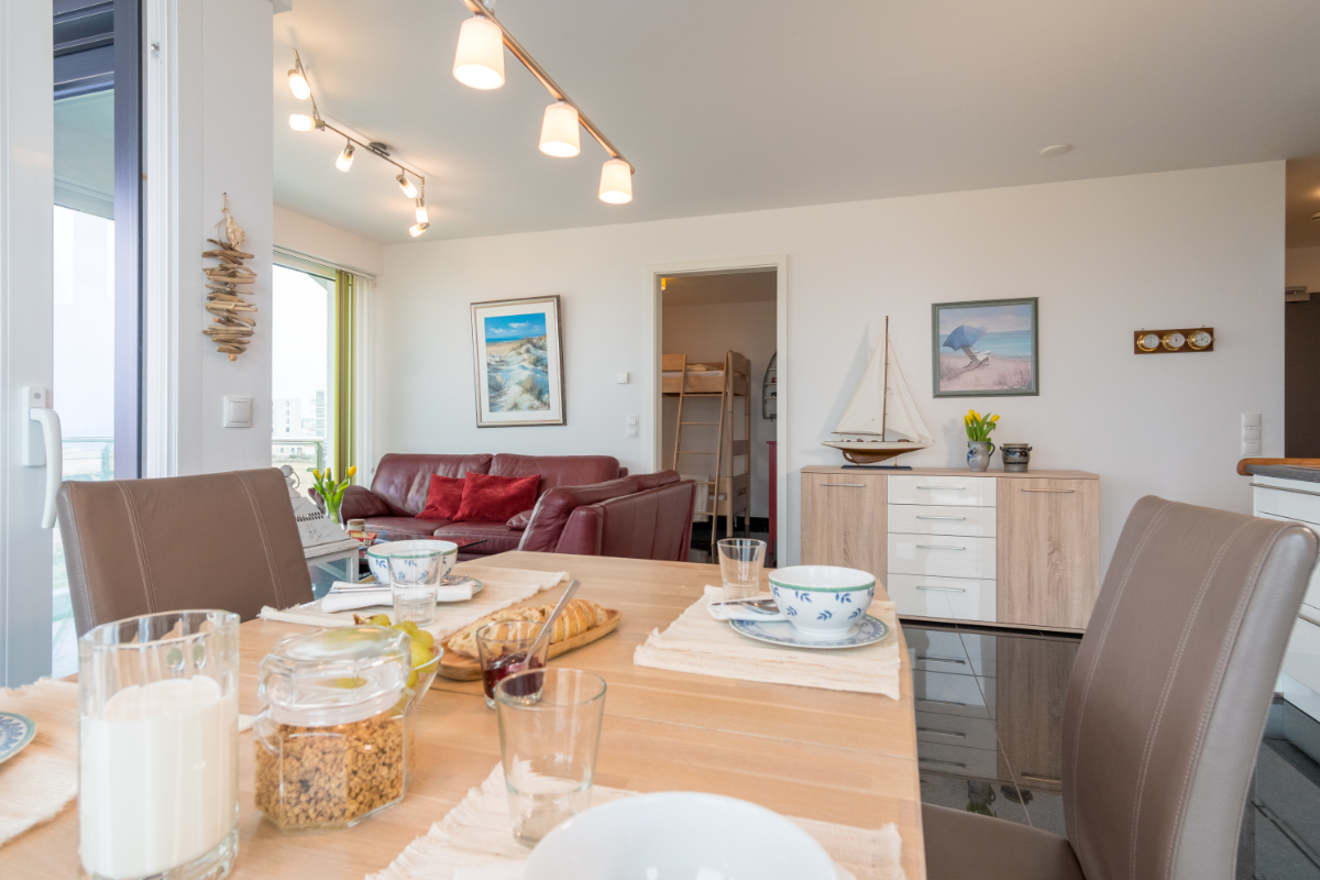 Urlauben Sie auf großzügigen 70m² (1. Etage) mit Nordost-Balkon. Das lichtdurchflutete Wohnzimmer ist mit einer gemütlichen Sofaecke und Flatscreen-TV ausgestattet. Im Essbereich finden bequem vier Personen Platz zum Schlemmen. Die angrenzende Küchenzeile ist, für den Urlaubsbedarf, voll ausgestattet. Ein Backofen und ein Geschirrspüler gehören ebenso dazu, wie die Kaffeemaschine, der Wasserkocher und ein Toaster. Geschirr und Besteck sind ausreichend vorhanden. Vom Wohnzimmer aus gelangen Sie auf den Balkon mit Blick zur Ostsee. Das Schlafzimmer verfügt über ein gemütliches Doppelbett (2*90*200cm). Das Kinderzimmer ist mit einem Etagenbett eingerichtet (auch für Teenager geeignet). Das Badezimmer ist mit einer ebenerdigen Dusche mit Glastrennwand ausgestattet. Außerdem steht Ihnen hier noch eine wohnungseigene Waschmaschine zur Verfügung.